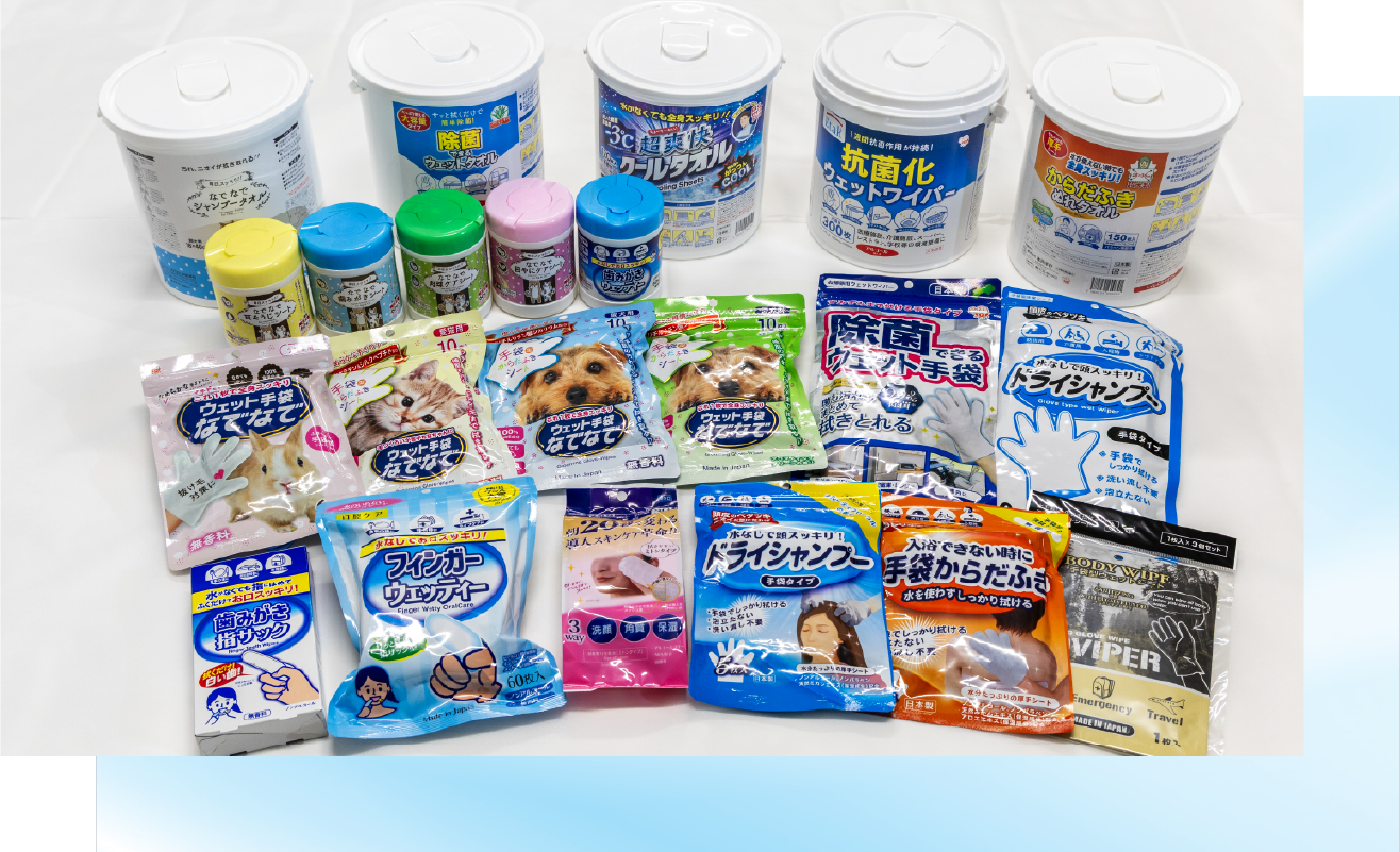 私たちは、暮らしを豊かにする独創的な商品づくりを追求しています。長年培ってきた不織布加工の技術と経験をもとに、機能性と使い心地にこだわった自慢の製品ラインナップを展開しております。皆様の日常をより快適にする、多彩なアイテムをぜひ手に取ってみてください。