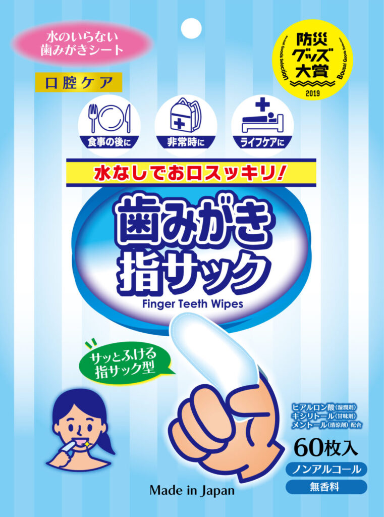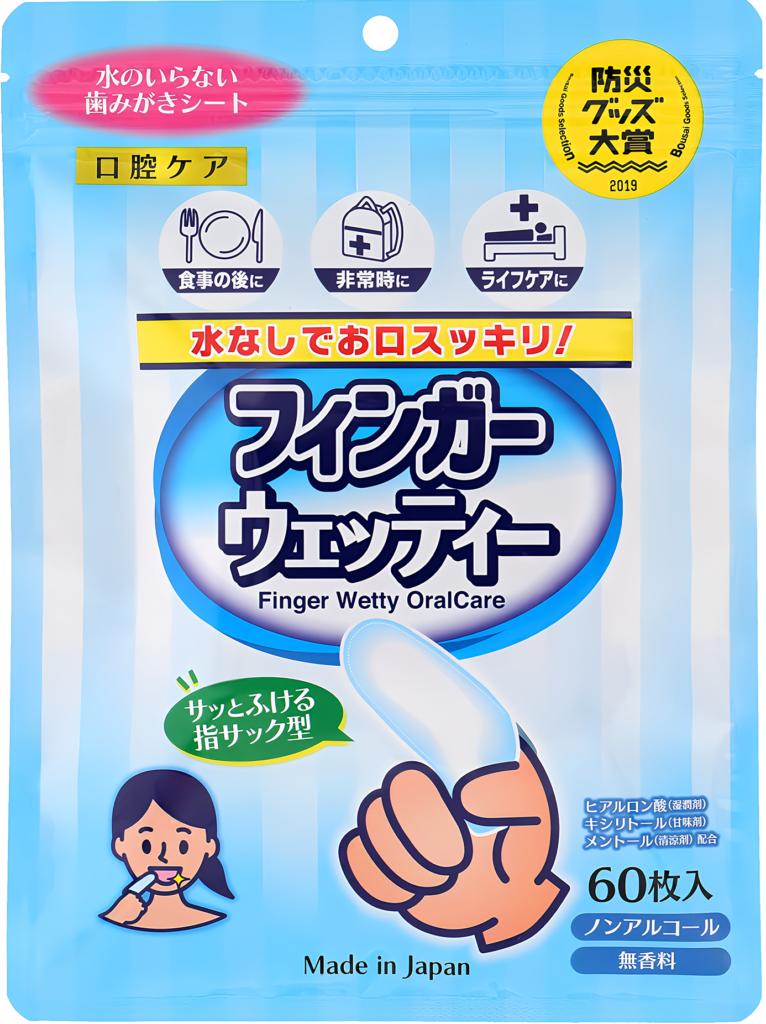 指サック型の歯磨きシートです。指に装着するだけで簡単に使用できます。